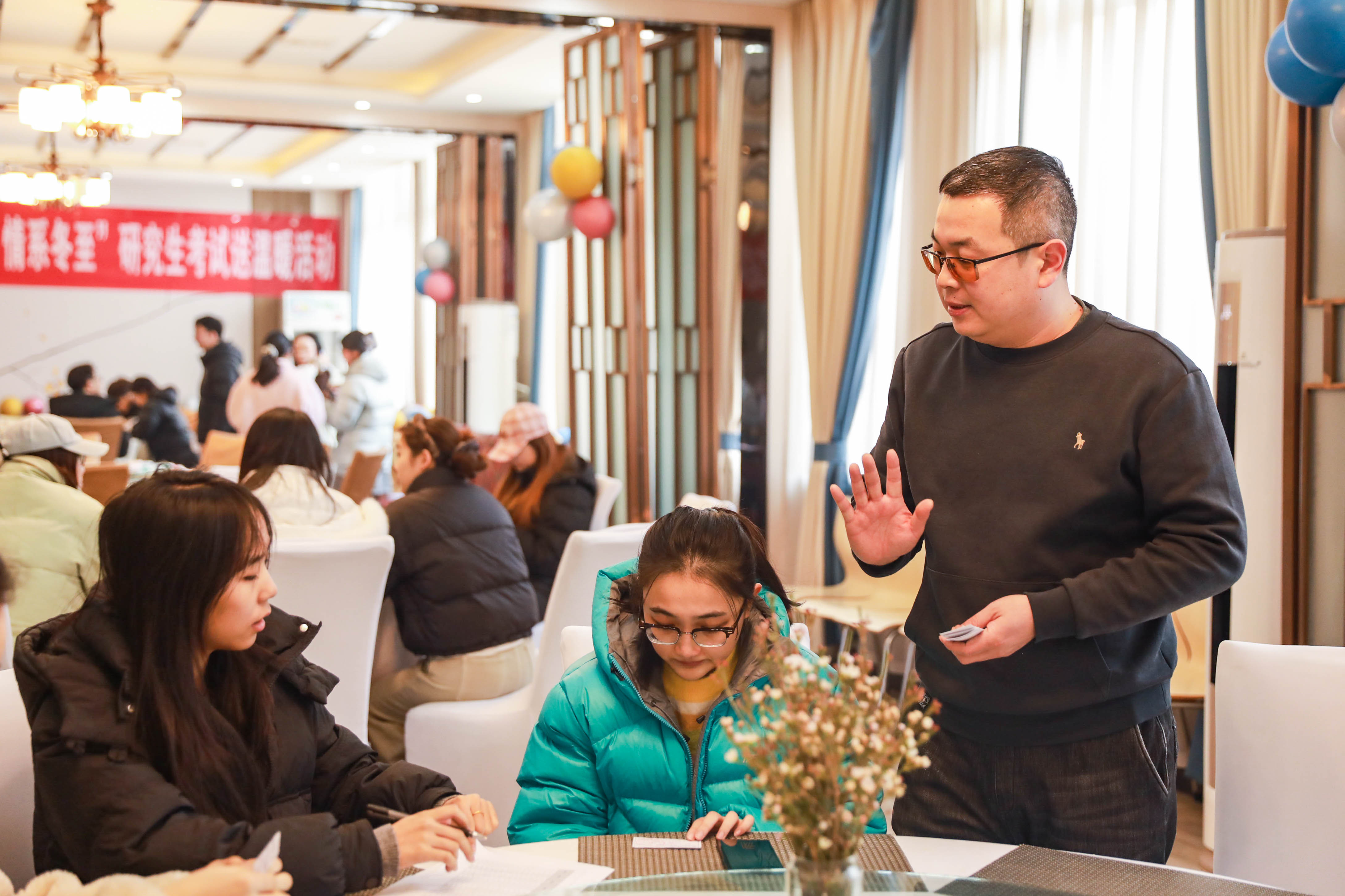 用餐期间,老师们与正在用餐的考研学子亲切交谈,为大家送上冬至佳节的美好祝福与考研必胜的殷切鼓励。辅导员老师化身“暖心陪伴者”,穿梭在餐桌之间,倾听学子心声、记录诉求困惑,及时回应解决各类问题。一句句真挚的叮嘱、一份份暖心的关怀,让每一位远离家乡的学子都深切感受到集体的温暖,更坚定了全力以赴、逐梦考场的信念与决心。