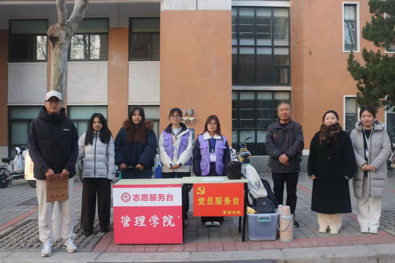为切实服务管理学院考研学子,营造温馨、便利的考试环境,管理学院于2025年12月20日至21日全国硕士研究生统一招生考试期间,在资讯大楼下设立“考研学子暖心服务站”并提供教学2号楼107教室让学子们学习,服务站为奋战考场的学生们提供物品寄存、热水供应与休憩学习等多项暖心服务。