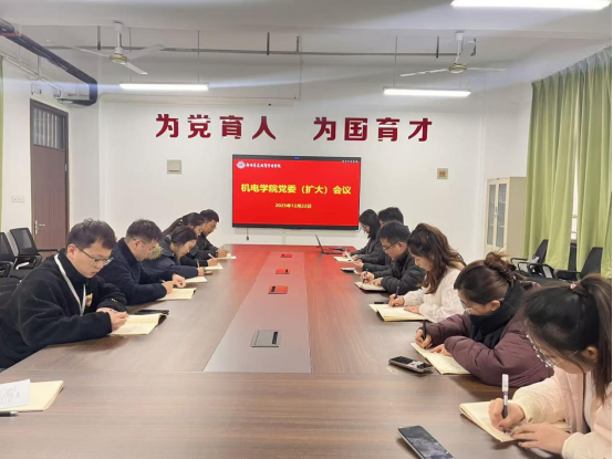 12月22日下午,机电学院在万林大楼524会议室召开党委(扩大)会议。学院党委委员及全体辅导员参加了会议。会议由党委书记丁向育主持。