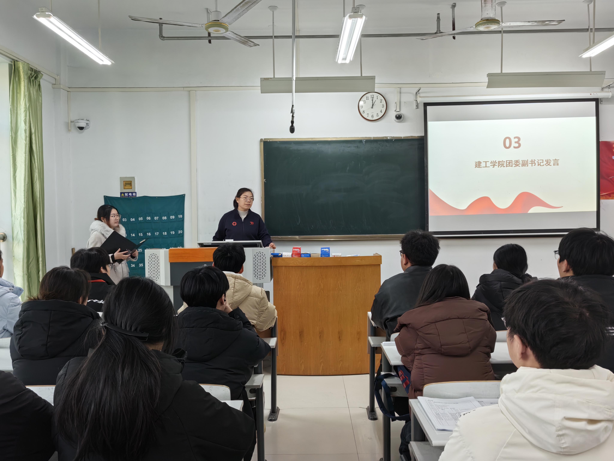 宣誓仪式后,院团委副书记王洋洋发表讲话。她代表学院团委向新团员的加入表示热烈祝贺,同时向全体新团员提出殷切期望。她指出,共青团是广大青年在实践中学习中国特色社会主义和共产主义的学校,是党的助手和后备军。她勉励新团员们要积极投身团的各项活动,在志愿服务中锤炼品格,在专业学习中增长才干,在奉献中彰显青春价值,以实际行动为建筑行业发展与祖国建设贡献青春力量。