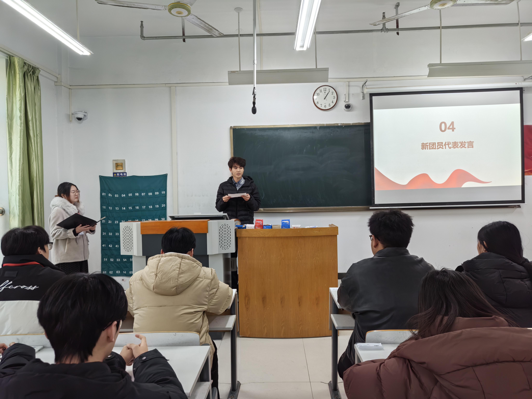 优秀团员代表张少祥结合自身成长经历上台分享感悟。他谈到,作为建工专业的团员,既要深耕建筑工程领域的专业知识,筑牢理论根基,也要积极参与实践实训活动,将所学知识转化为服务社会的本领。他鼓励新团员们珍惜青春韶华,以榜样为标杆,用奋斗践行团员使命,争做有理想、敢担当的新时代青年。