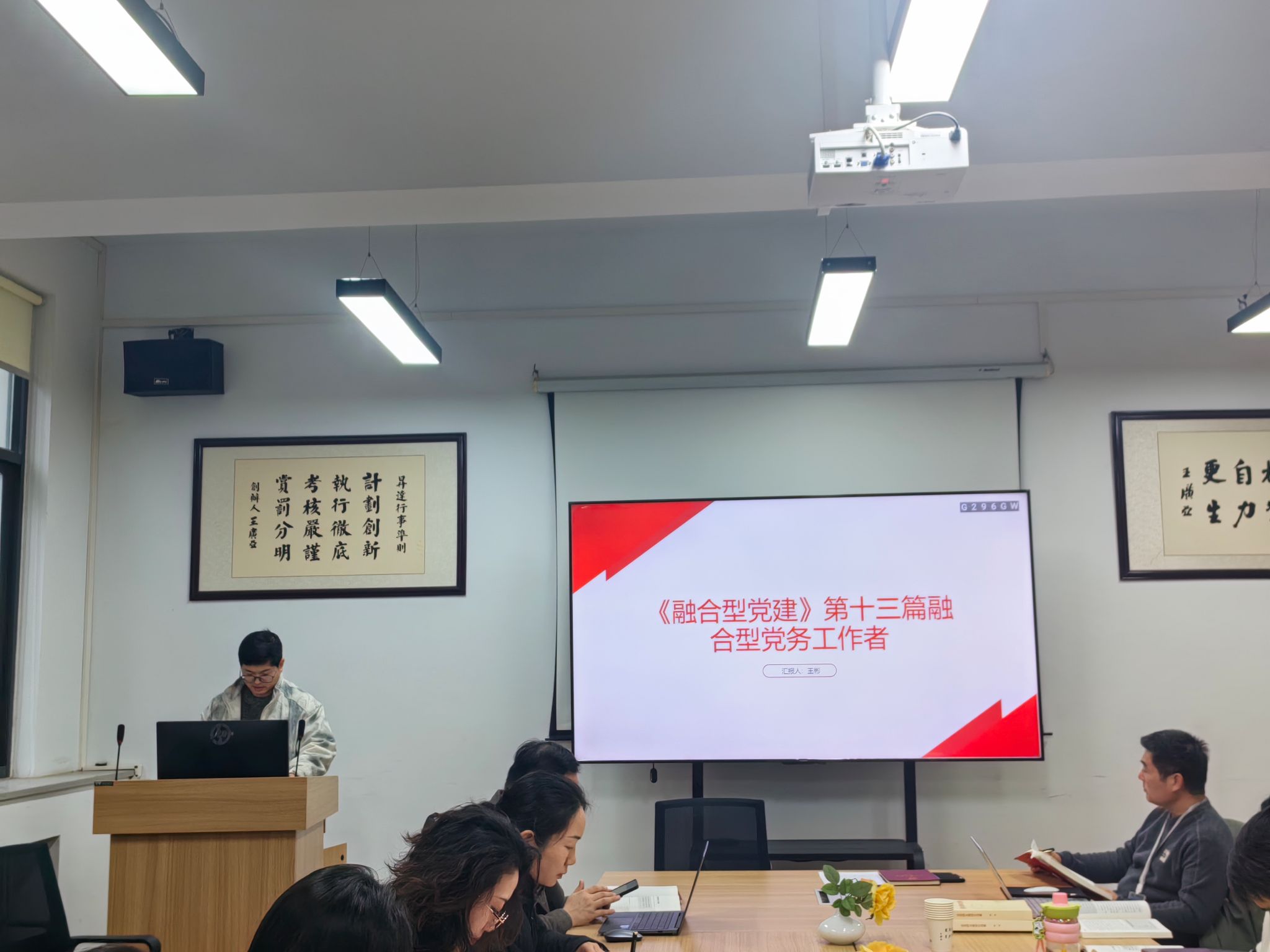 随后,商英专业学生党支部书记王彬同志围绕《融合型党建》第十三篇“融合型党务工作者”作专题领学。他结合自身担任党建组织员和学生党支部书记的双重身份,分享三点体会:一要有“融合意识”,主动打破党建与业务之间的壁垒,将组织生活嵌入学业发展、科研竞赛、就业指导等实际场景中,避免“两张皮”;二要有“服务意识”,始终把师生关切放在首位,在帮助教师解决实际困难、引导学生健康成长中赢得信任与支持;三要有“学习+转化意识”,不做照搬照转的“二传手”,而要做政策落地的“施工员”,善于将上级精神转化为可操作、能参与、见成效的具体行动。