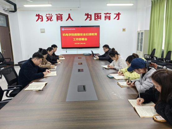 12月24日,机电学院在万林大楼524会议室召开假期安全纪律教育工作部署会。会上,学院党委副书记朱帅传达了学校对于假期安全、纪律教育工作的相关要求,结合近期安全工作形势和寒假期间学生管理特点,对假期安全纪律教育工作进行了全面部署。他强调,安全是假期的前提和基础,全体辅导员要把学生安全放在首位,充分认识假期安全工作的重要性和紧迫性,积极召开寒假假期安全主题班会,把安全教育工作做实做细。