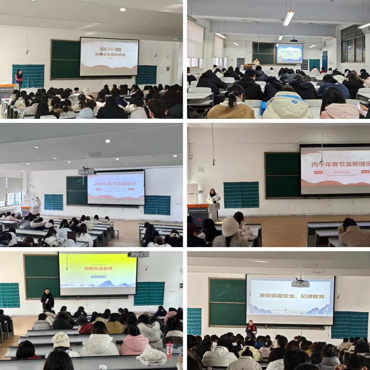 岁末渐近,寒假将至。为切实筑牢学生假期安全防线,保障学生度过一个平安、健康且充实的假期,文法学院严格落实学校安全工作部署,以“安全无小事,责任重于泰山” 为主题,组织全院各班召开寒假安全教育主题班会,并同步推进多维度的安全宣传教育活动,实现安全教育全面覆盖、无死角。