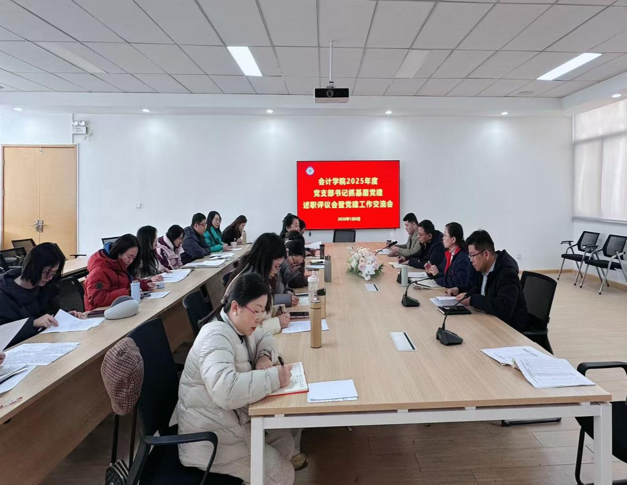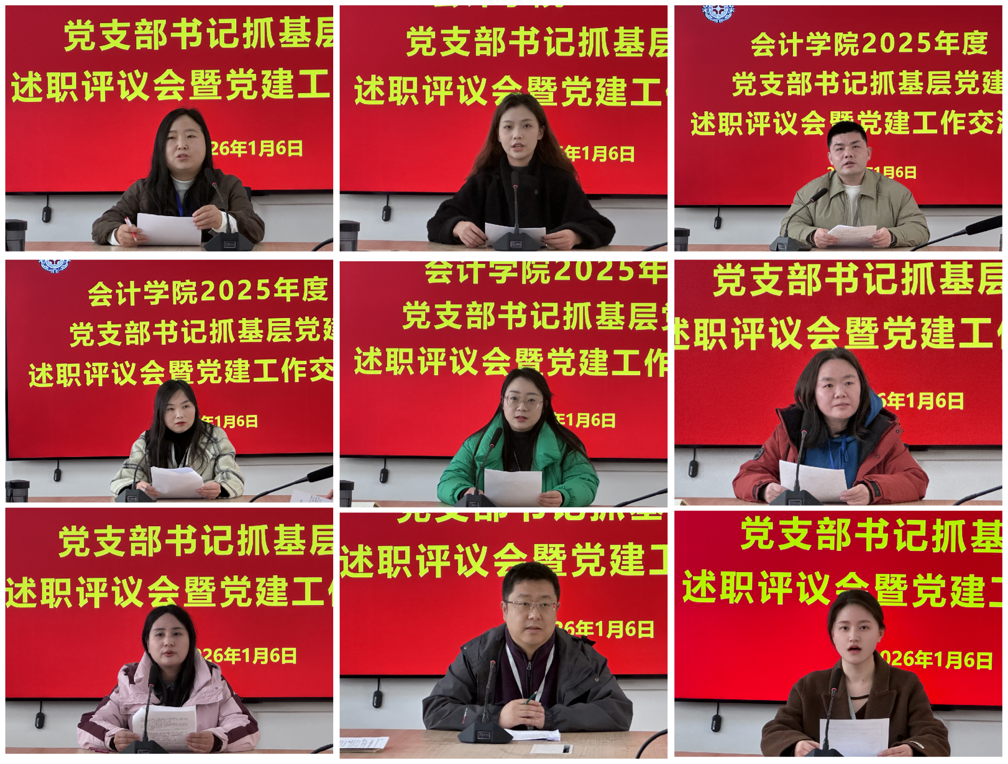 2026年1月6日上午,会计学院党委召开2025年度党支部书记抓基层党建述职评议大会暨党建工作经验交流会。党委成员,党支部书记和组织员参加会议。会议由学院党委书记张蕾主持。