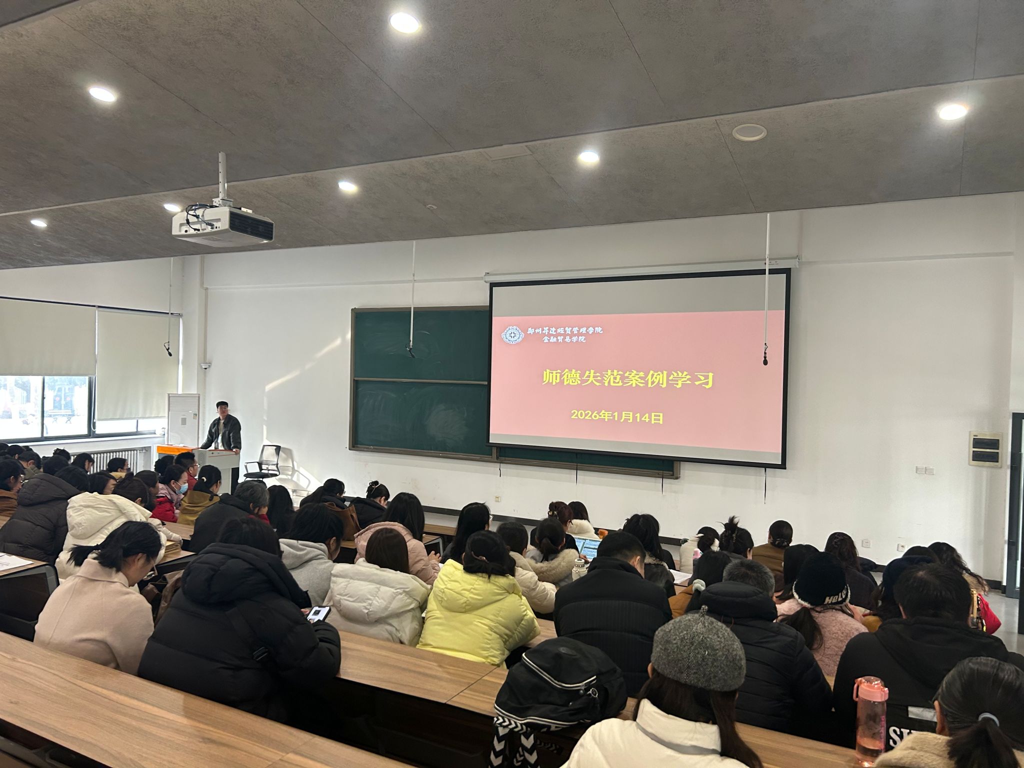 为深入强化教职工廉洁从教意识,1 月 14 日,金融贸易学院组织全体教职工召开师德师风警示教育大会,将理论学习与纪律教育深度融合,为学院高质量发展筑牢思想根基。
