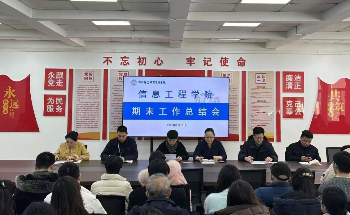 此次期末工作总结会全面梳理了本学期各项工作成效,精准查摆问题、明确工作重点、压实工作责任,为新学期各项事业高质量发展奠定了坚实基础。下一步,信息工程学院将以此次会议为契机,持续聚焦教学质量提升、学科建设深化、学生成长成才等核心任务,狠抓工作落实,锐意进取、真抓实干,不断推动学院各项工作再上新台阶。
