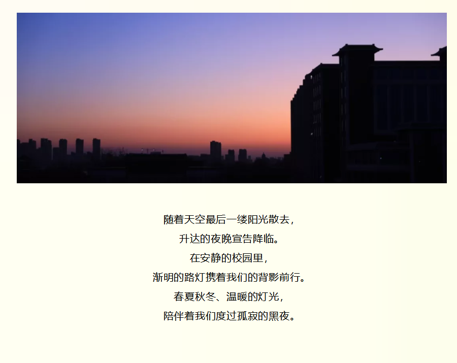 伴我们理想前行。随着天空最后一缕阳光散去,