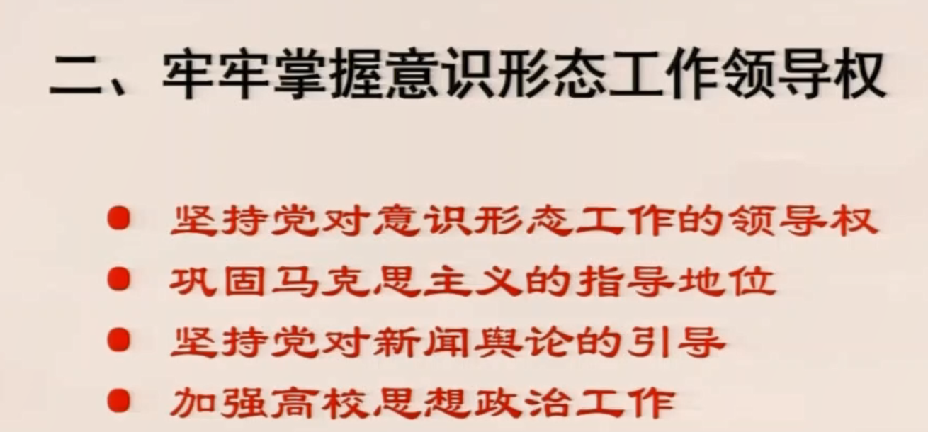 郭立亚全文传达了学校今年的意识形态工作要点,并结合学院具体工作进行了提醒,要求班子成员切实履行意识形态工作责任制,在年度考核、述职述廉和专题民主生活会上作为必谈内容。全体人员学习了习近平总书记关于意识形态工作的重要论述,重点学习了坚持党对意识形态工作的领导权、巩固马克思主义的指导地位、坚持党对新闻舆论的引导、加强高校思想政治工作四个方面的内容。