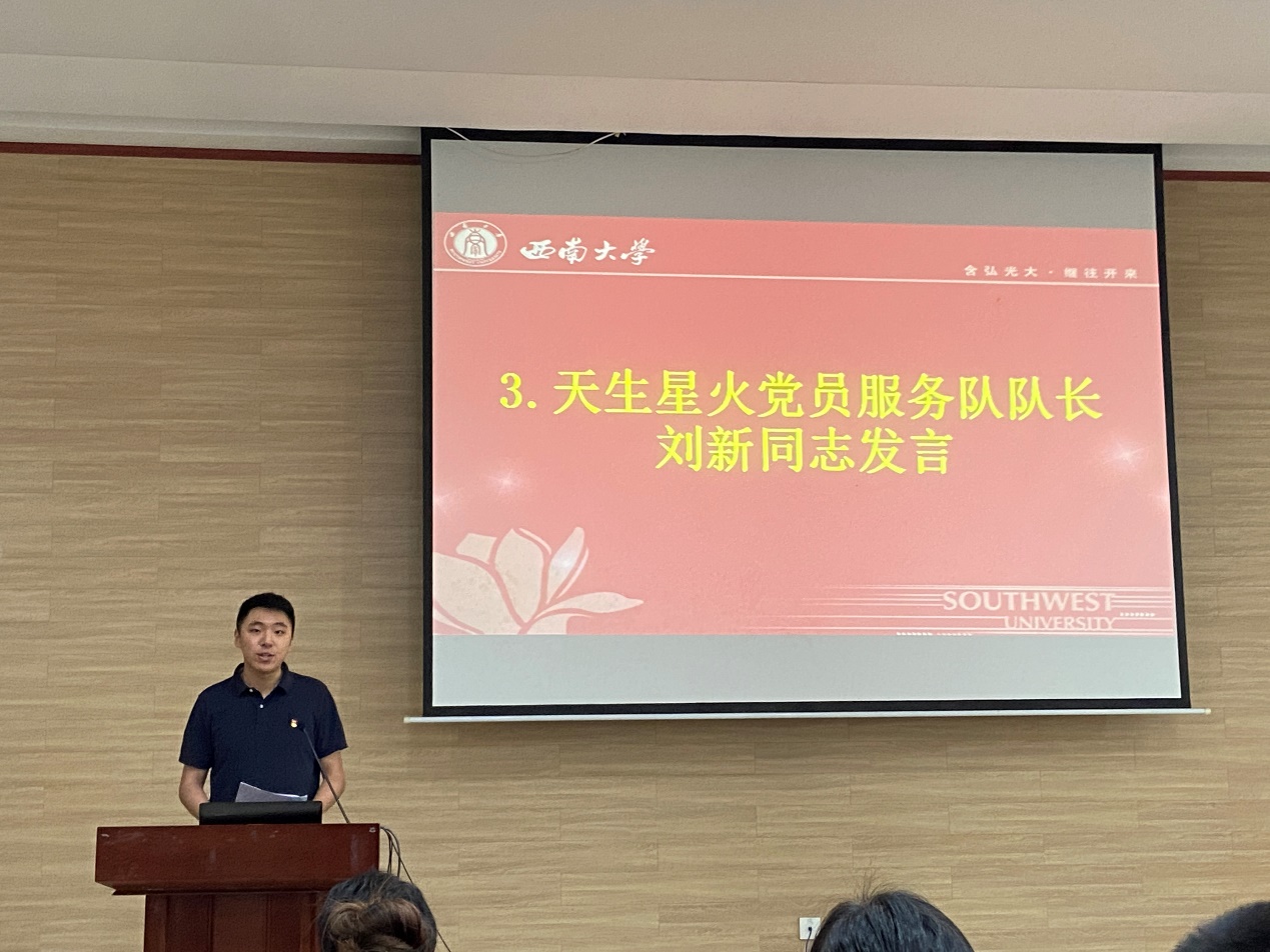 2022年6月10日下午15:30,西南大学体育学院天生星火党员服务队换届仪式暨毕业生党员专题教育活动在体育学院109报告厅举行。学院党委委员、党支部书记、全体学生党员和全体毕业生党员参与此次会议,学院党委副书记、纪委书记张剑兰担任主持人