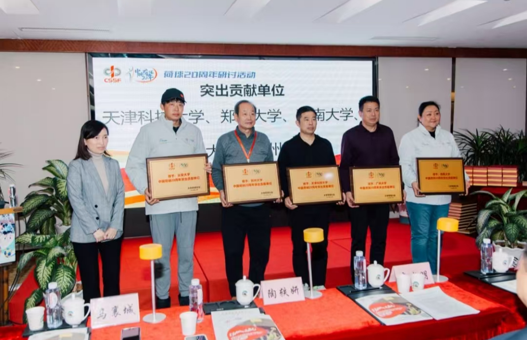 学校因在荷球运动领域做出的卓越贡献,被授予“突出贡献单位”奖项,同时有多位教师、校友获得表彰。体育学院院长黄晓灵获“优秀贡献个人”称号,体育学院教练员姚磊和运动训练专业2009级校友张瑞光被评为“最佳教练员”,2010级研究生校友马丁和2015级研究生校友管明曦被评为“最佳裁判员”。会上,姚磊作为代表分享了个人加入荷球运动十六年的经历和感受,以及学校荷球发展的经验,她表示学校将进一步加强荷球运动相关的科研与教学,致力于培养更多优秀的荷球人才。