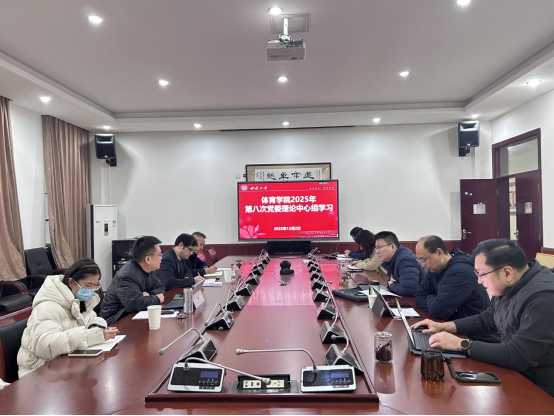 12月2日,学院党委理论学习中心组召开2025年第八次学习会,贯彻落实习近平总书记对体育工作重要讲话和重要指示精神,深入学习教育部等五部门联合印发的《关于实施学生体质强健计划的意见》。校党委委员、财务部部长、采购与招投标管理中心主任杜勇列席指导,学院领导班子成员参加会议,党委书记张其光主持会议。