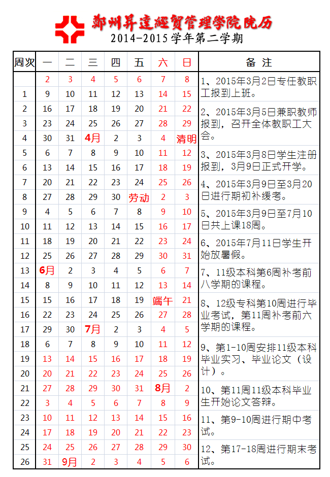 2014-2015学年第二学期
