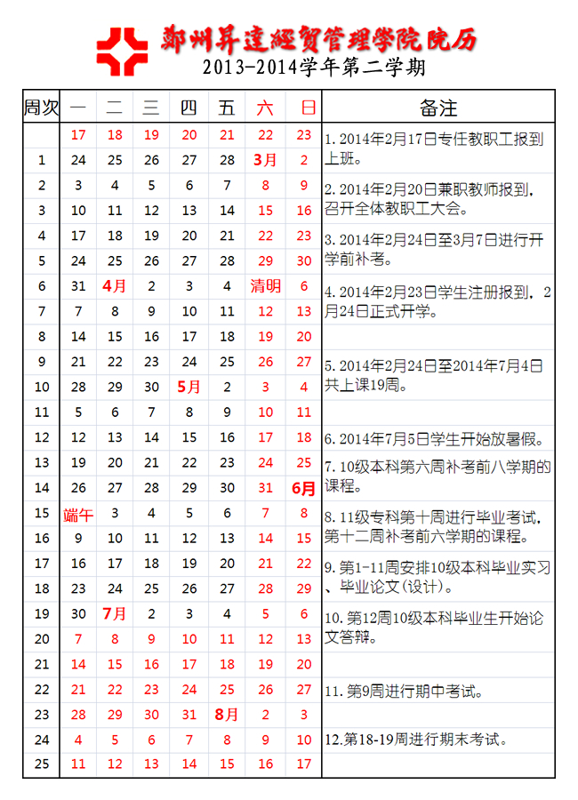 2013-2014学年第二学期