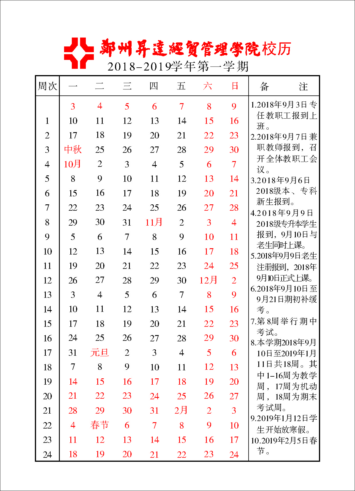 校历信息