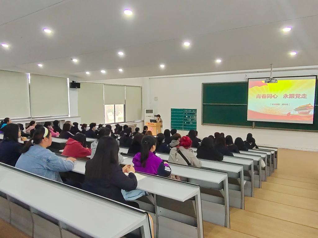 为引导广大团员青年增强“四个意识”,坚定“四个自信”,做到“两个维护”,坚定不移听党话、跟党走,3月26日中午十二点半,由文法学院团委主办,组织部承办的第六期业余团校第八课在教1楼118教室举行。此次团课由文法学院团委书记郑玲玲老师讲授,团校全体成员准时到场听讲。