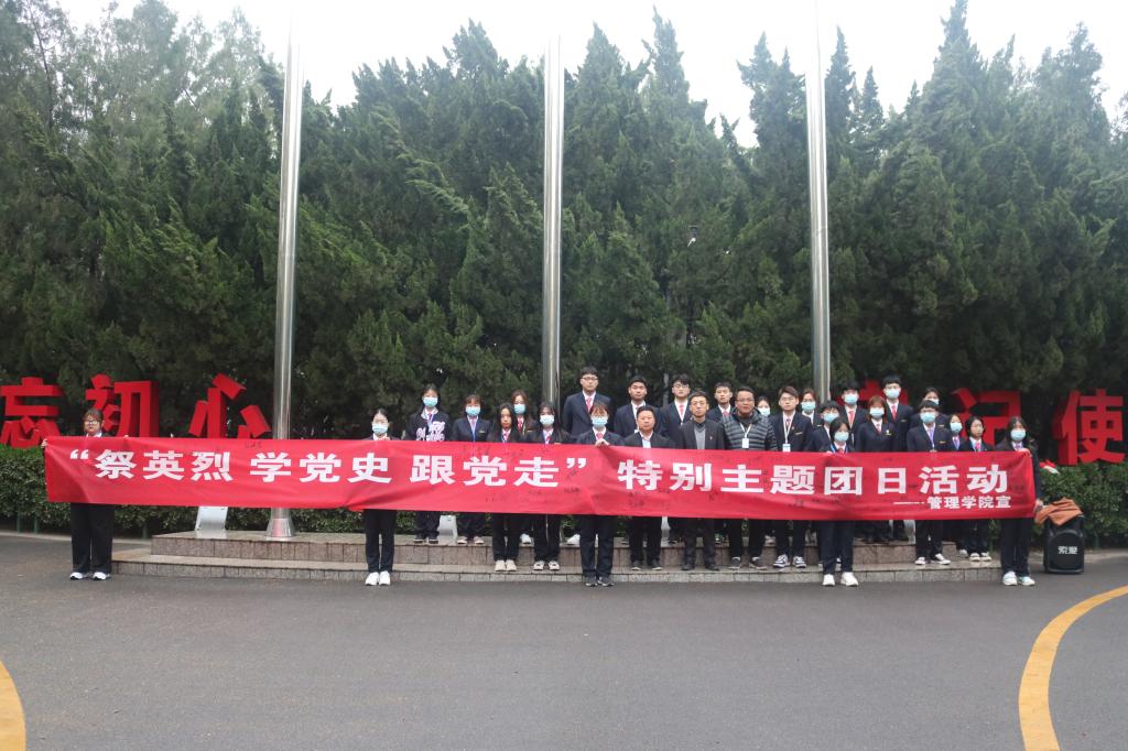 团员代表管理学院邵玉姣同学作国旗下演讲,表达了作为青年大学生要铭记英雄烈士,自觉学习党史,将青春梦融入中国梦,为实现中华民族伟大复兴奉献青春力量。