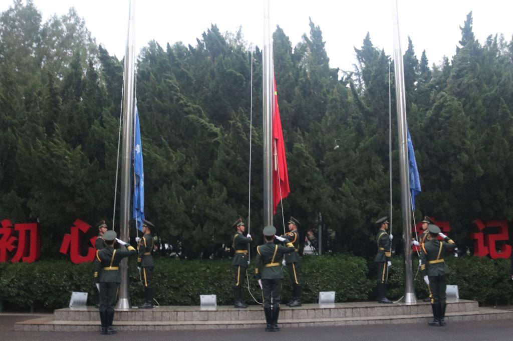 升旗仪式后,全体师生向革命英雄默哀,寄托对英雄无限的哀思和敬意。