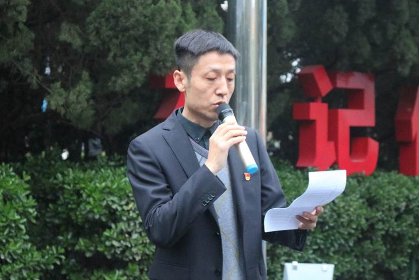 接着,由校团委副书记李松涛老师进行讲话。他向我们分享几点学习心得:一是学史增信,做党史学习教育的领群人;二是学史从德,做党史学习教育的宣讲人;三是学史必行,做永远跟党走的践行者。他还呼吁我们珍惜在校时光,立行当下,不负韶华,争当具有爱党爱国爱学习爱劳动鲜明特征的升达学子,努力成为具有大爱、大国、大情怀的新时代大学生。
