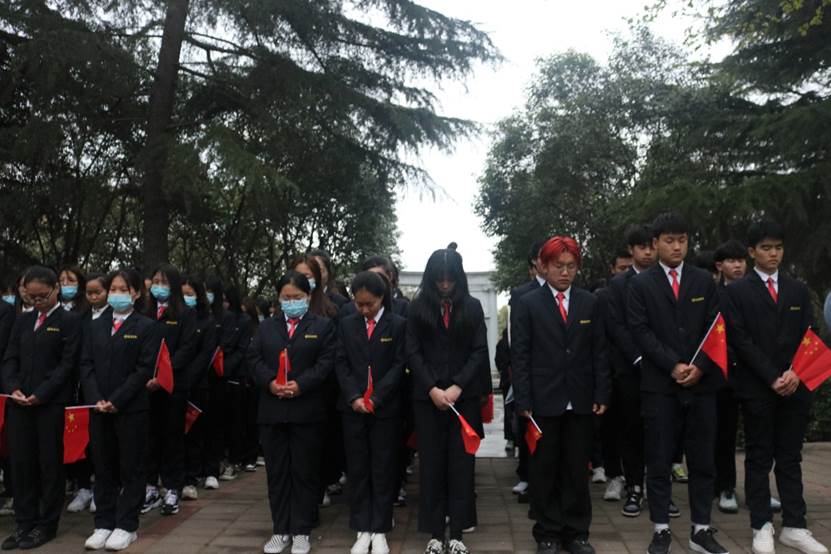 活动伊始,在全体成员的注目下,英姿飒爽的升旗队员护送鲜艳的五星红旗进场,行礼完毕,伴随着庄严的中华人民共和国国歌,五星红旗冉冉升起,随风飘扬,在场的每一个人向国旗行注目礼,身怀对祖国无限的热爱。随后大家一起默哀,对逝去的伟大先人表达深深的缅怀和崇高的敬意。