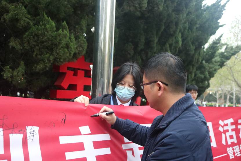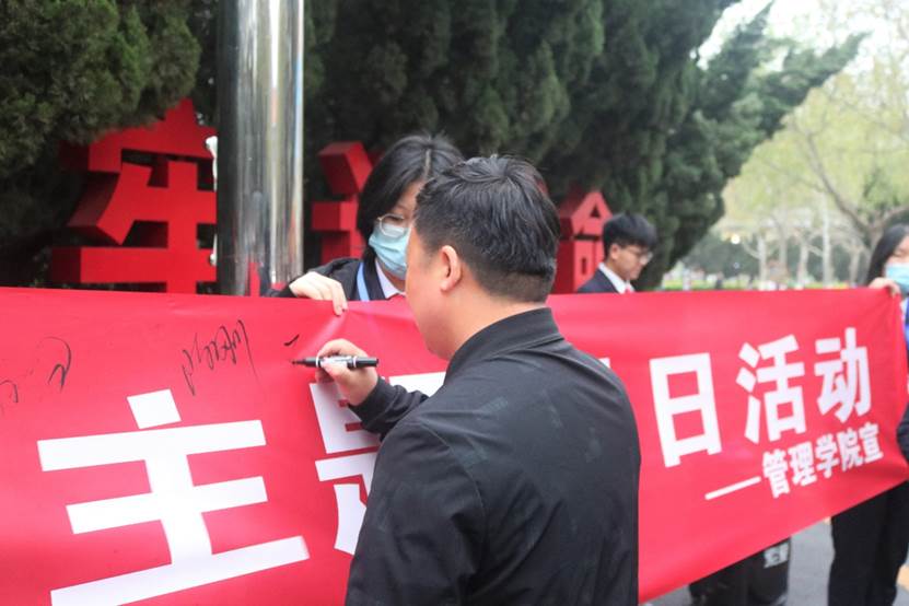 为缅怀革命英烈,学习党史,传承红色基因,营造爱党爱国的浓厚氛围,培养团员青年爱党、爱国、爱社会主义的情感,管理学院于2021年4月2日早六点三十分在升达大道国旗台开展以“初心向党,学史增信”为主题的团日活动。校院领导以及近1000名团员参加此次活动。