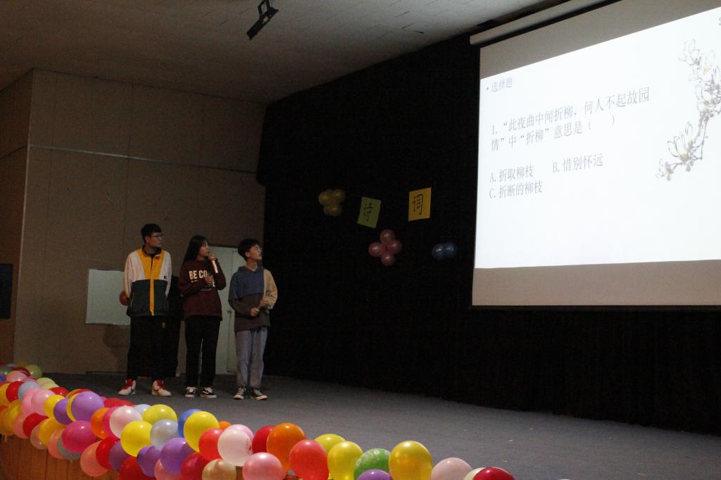 在主持人介绍比赛流程后,本次活动正式拉开帷幕。首先,每个参赛队伍各自进行了精彩的自我介绍,“踏诗角逐”环节让我们看到了每个队伍的实力。接下来的飞花传令、诗词接龙对参赛选手的诗词储备量和随机应变能力有着极高的要求,选手们将激烈的对决转化为诗词的交流盛宴。文艺部部长李新宵为我们带来了一首节奏舒缓的《烟雨行舟》,缓和了紧张的比赛氛围。最后由文法学院团委副书记杨柳对整场比赛进行点评,她对本次活动的组织人员表示感谢,肯定了参赛选手的文学知识积累,鼓励大家继续保持对中华优秀传统文化的热爱。最后,经过计分人员的核算,20级法学二班和20级汉语言文学二班并列冠军,20级学前教育二班夺得亚军,季军为20级法学三班,优秀团体奖由20级新闻班获得。