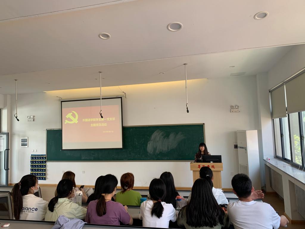 在中国共产党成立一百周年的伟大日子,为了弘扬爱国主义精神,增强党史、国史教育,学习先进党员事迹、精神,外国语学院第一党支部稳步开展“我为优秀共产党员代言”党史学习教育。5月27日下午,一支部在教一楼208会议室开展了主题党日活动。