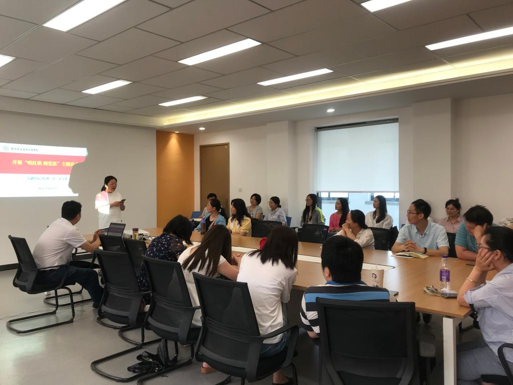 为迎接中国共产党百年华诞,传承红色基因,弘扬红色文化,充分展现教工第二党支部良好的精神面貌和团队协作向上的工作精神,6月3日,教工第二党支部在3号楼212教室开展“党史学习教育 迎接百年华诞”系列活动之“唱红歌 颂党恩”主题活动。支部书记刘合群同志担任主持人。