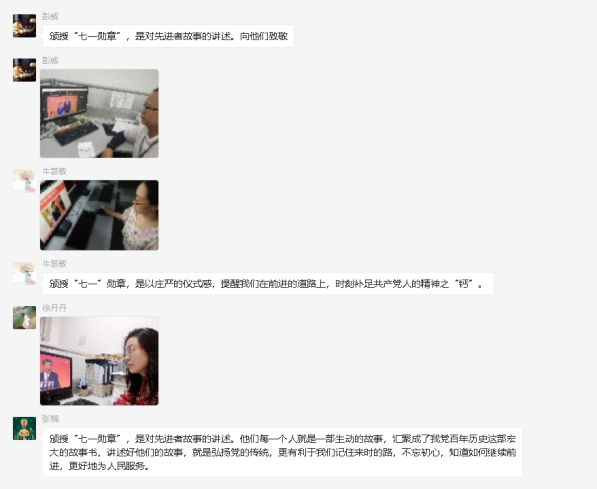 大家纷纷表示,通过此次集中观看学习“七一勋章”颁授仪式直播活动,切实感受到身为一名党员的光荣和使命感。