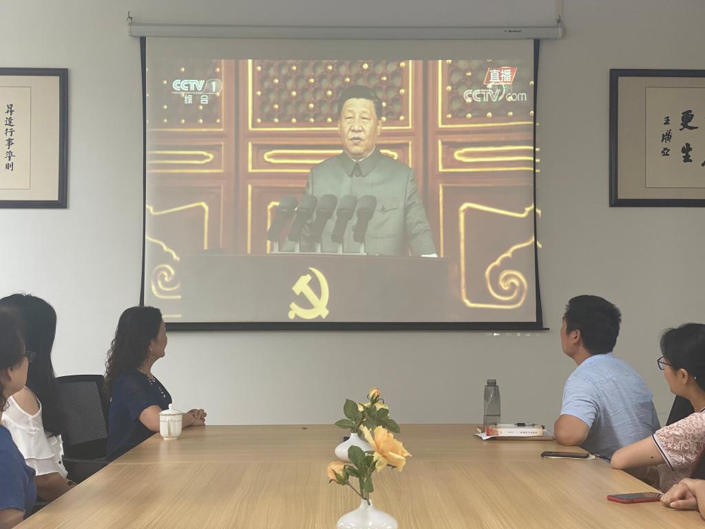 大会结束后,习近平总书记的重要讲话在我院师生中引起强烈反响。大家纷纷表示,习近平总书记在讲话中回顾了百年来中国共产党团结带领中国人民接续奋斗的光辉历程,阐述了百年大党的情怀与担当,展望了中华民族伟大复兴的光明前景,内涵丰富、思想深刻,让人心潮澎湃、备受鼓舞、倍感振奋、倍增干劲。我们定当深入学习贯彻总书记的重要讲话精神,更加坚定地听党话、跟党走,继承伟大建党精神,弘扬光荣传统,赓续红色血脉,为全面建成社会主义现代化强国、实现中华民族伟大复兴的中国梦矢志奋斗!(图文:张帅)