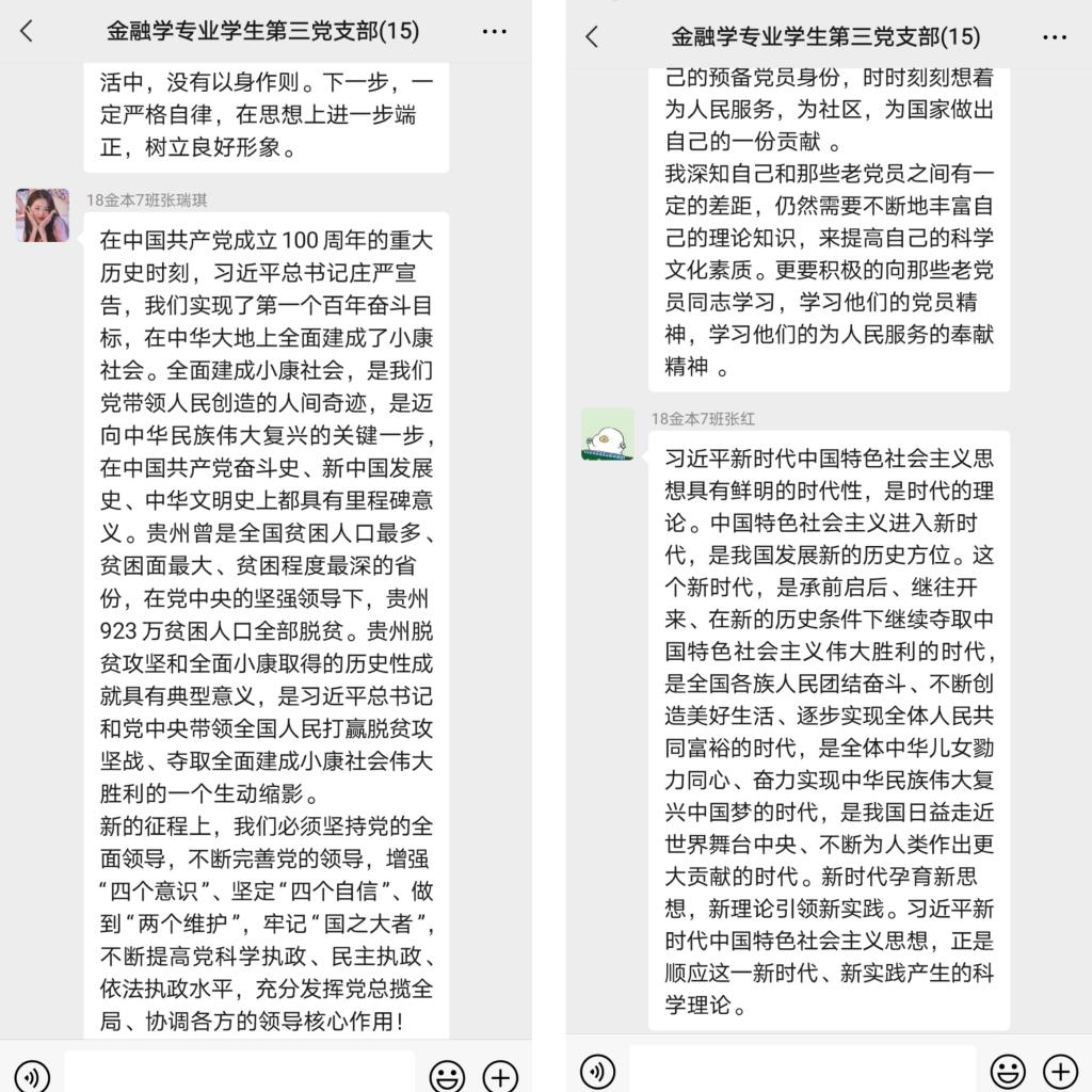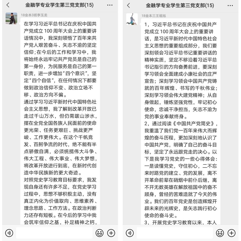 按照我校党委《关于召开党史学习教育专题组织生活会的通知》及金贸学院党委的工作部署,金贸学院金融学专业学生第三党支部于8月31日晚,召开线上“党史学习教育”专题组织生活会。会议由支部书记杨秋雨主持,支部全体党员参加。