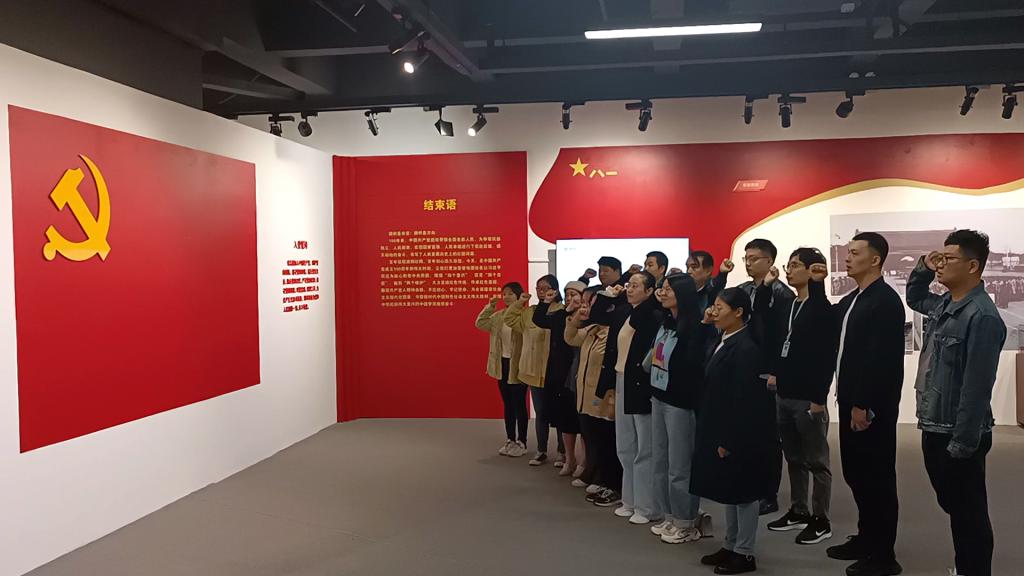 参观学习的最后,全体同志面对党旗,在党委书记韩炎涛的带领下,举起右拳庄严宣誓,并重温了入党誓词。