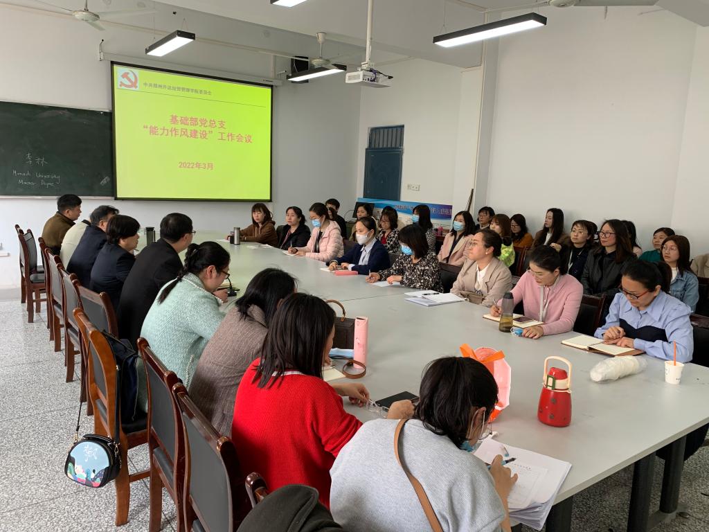 3月4日中午13:00,基础部在综218会议室召开“能力作风建设年”专题活动会议。基础部主任王莉莉教授、副主任焦争鸣教授,教学秘书张艳老师,以及全体党员和入党积极分子参加了会议。会议由基础部党总支书记张志银副教授主持。
