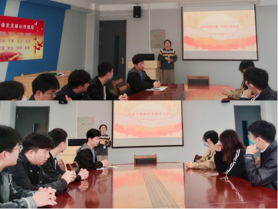 活动共有三项议程。一是深入学习贯彻习近平总书记关于能力作风建设的重要论述,贯彻落实全省“能力作风建设年”活动推进会内容,积极研究支部能力作风建设年活动的开展形式。二是支部书记带领大家进行党员干部知识手册的学习;三是“学习强国”系列微党课分享活动。本周根据学习强国学习情况,由支部副书记王鸿飞同志和支部学生党员程丽君同志带来微党课分享。王鸿飞同志微党课的题目是,心怀国之大者。该同志根据3月6日习近平总书记在看望参加全国政协会议的农业界、社会福利和社会保障界委员时,为“国之大者”的深刻内涵注入新意为切入点。从2020年4月习近平总书记在陕西考察时首次提出“国之大者”以来,习近平总书记在不同场合不断阐释“国之大者”深刻丰富的内涵。王鸿飞副书记借习近平总书记的话向全体党员提问,“世界处于百年未有之大变局,如何不畏浮云遮望眼?”希望我们支部的党员同志们在未来的征程上,笃行不怠,行必能至。程丽君同志微党课的题目是,长津湖。该同志以这两年比较火的电影《长津湖》和《长津湖之水门桥》为切入点,向在座的党员同志们形象地介绍了长津湖战役的时间、意义。并通过冰雕连、粉碎北极熊团展示了此次战役的惨烈。在最后,大家观看了《长津湖》电影的片段。此微党课的分享进一步弘扬伟大的抗美援朝精神,引导党员同志们赓续精神血脉、牢记职责使命。活动最后,支部书记杨萌玮再次就“学习强国”学习平台的意义进行了说明,指出了学习的重要性,要求大家主动利用好这一优势平台,加强学习、更新知识、拓宽眼界。