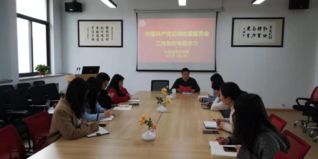 为进一步加强和规范新时代党的纪律检查工作,3月15日上午,外国语学院党委在教一楼206会议室召开《中国共产党纪律检查委员会工作条例》专题学习工作会,会议由党委书记石皓召同志主持,院党委部分委员及各支部书记参加。