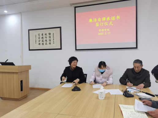 会议上,张小雁书记首先传达了学校党委《2022年工作要点》以及《中共郑州升达经贸管理学院纪律检查委员会2022年纪检工作要点》,重点传达学习了校党委书记雷霆,校党委副书记、纪委书记张欣的讲话精神及2022年度党的建设、纪检工作重点任务的部署与安排。宣讲了对教职工党风廉政建设相关的工作纪律和《干部廉洁自律“十不准”规定》文件内容,要求大家严格遵守“六条禁令、七条红线、十不准”,要严于律己,规范自身行为。党委书记和院长与辅导员、行政人员、教师签署《廉洁自律承诺书》,全员参与,形成了分布管理、层层落实的格局,达到了学院内部全覆盖。