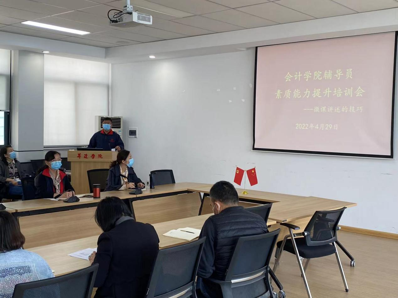 4月29日,会计学院组织开展了以“微团课讲述的技巧”为主题的辅导员素质能力提升培训会。培训会由行政秘书陈刚老师主持,会计学院党委书记张蕾、行政秘书刘锦及全体辅导员们一同学习了微团课方面相关的知识和讲述的技巧,共同探讨了参加微团课大赛需要注意的要点。
