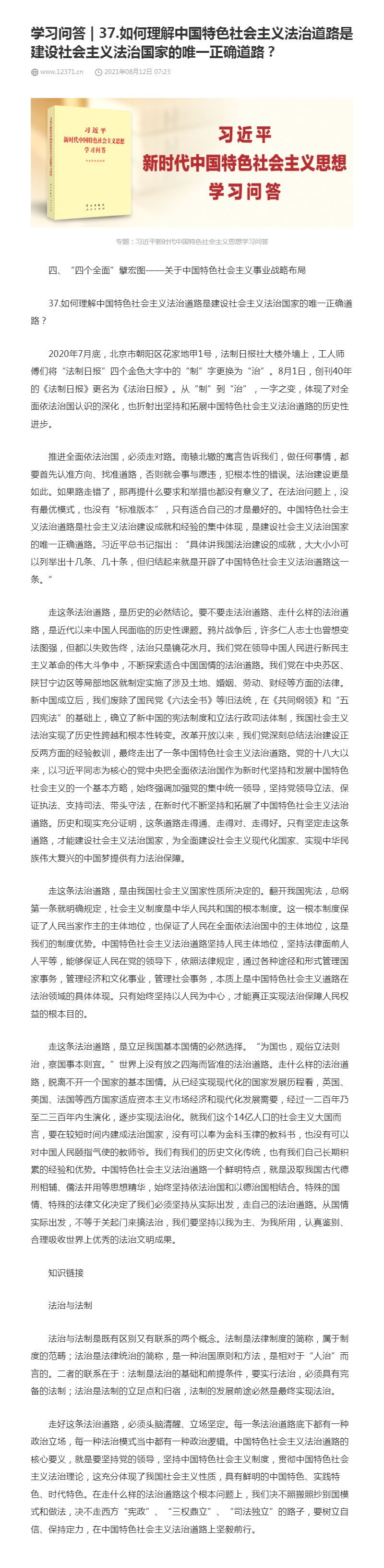 37.如何理解中国特色社会主义法治道路是建设社会主义法治国家的唯一正确道路?