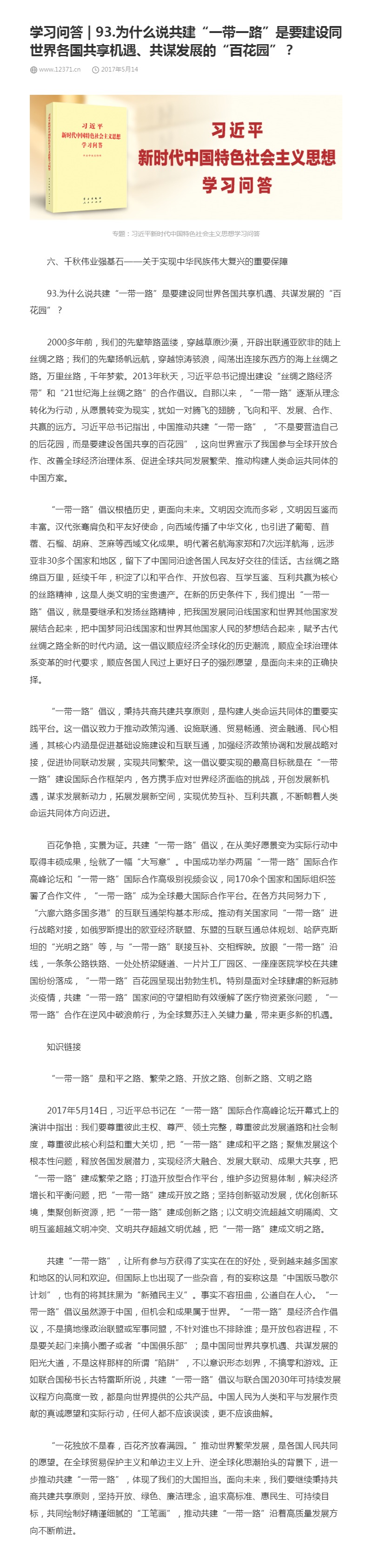 93.为什么说共建“一带一路”是要建设同世界各国共享机遇、共谋发展的“百花园”?