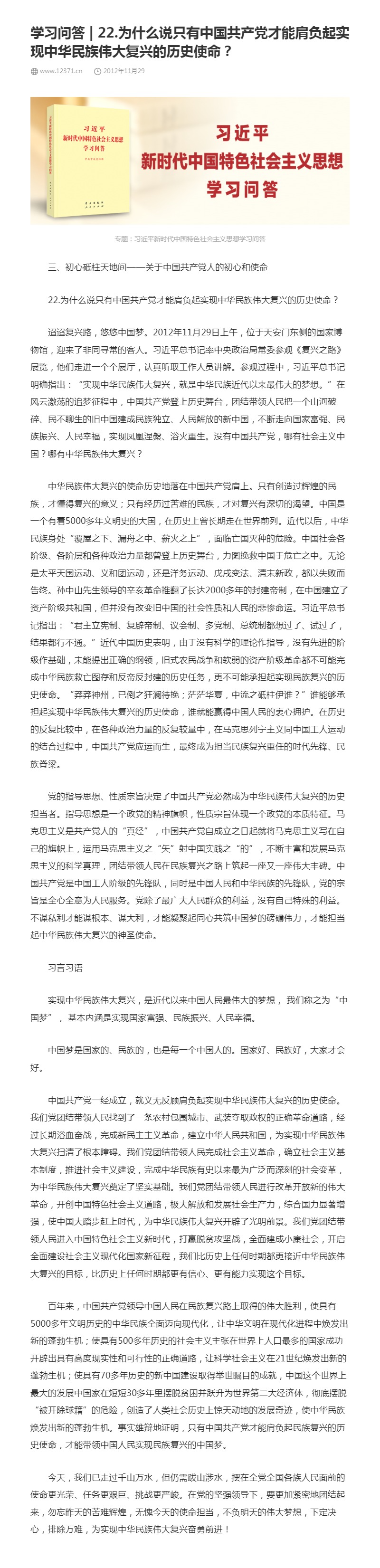22.为什么说只有中国共产党才能肩负起实现中华民族伟大复兴的历史使命?