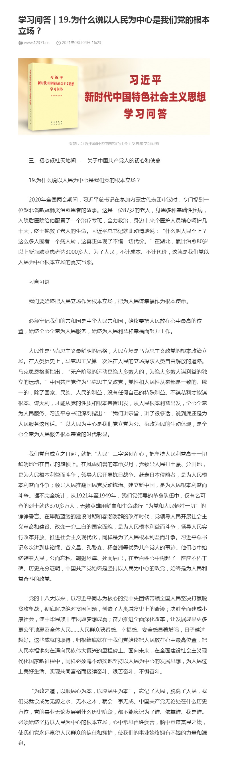 19.为什么说以人民为中心是我们党的根本立场?