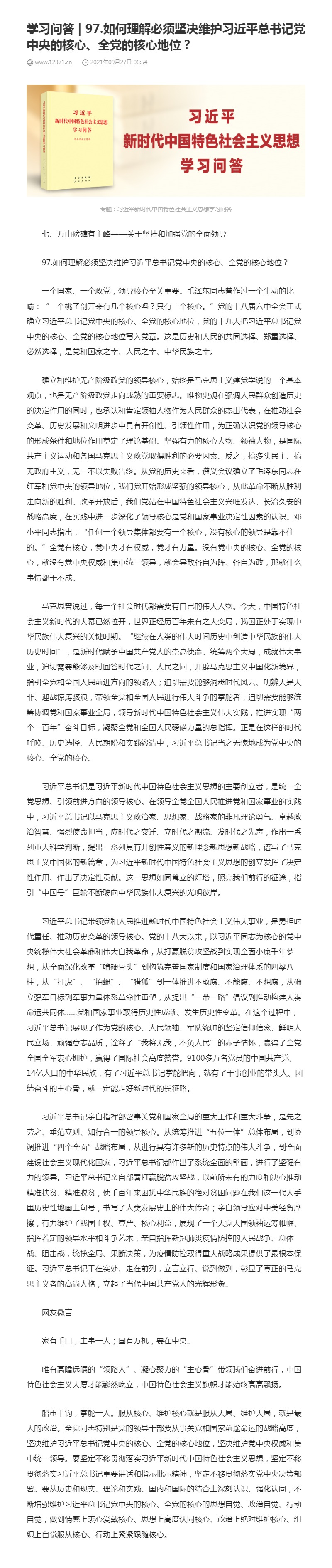 97.如何理解必须坚决维护习近平总书记党中央的核心、全党的核心地位?
