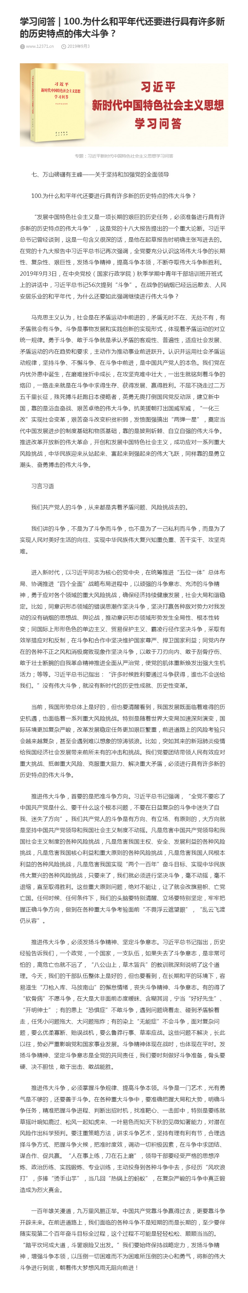 100.为什么和平年代还要进行具有许多新的历史特点的伟大斗争?