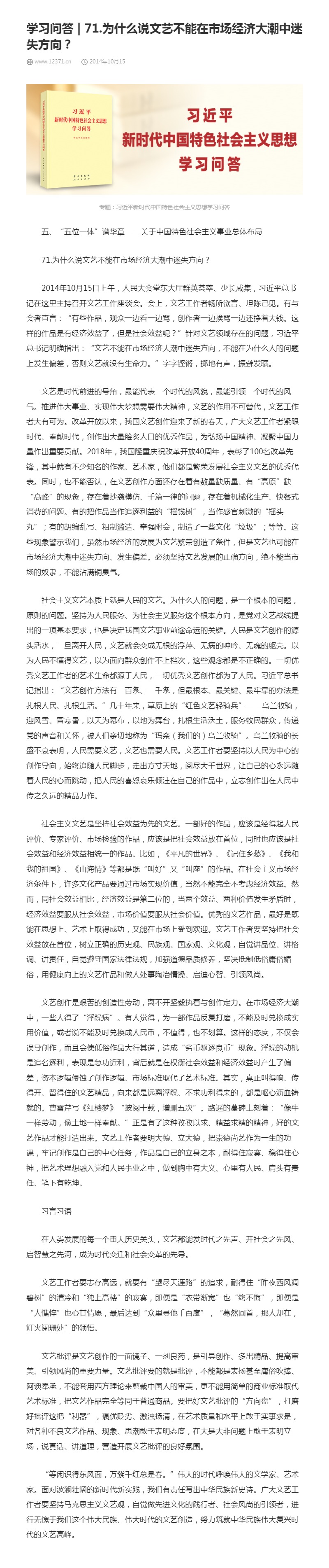 71.为什么说文艺不能在市场经济大潮中迷失方向?