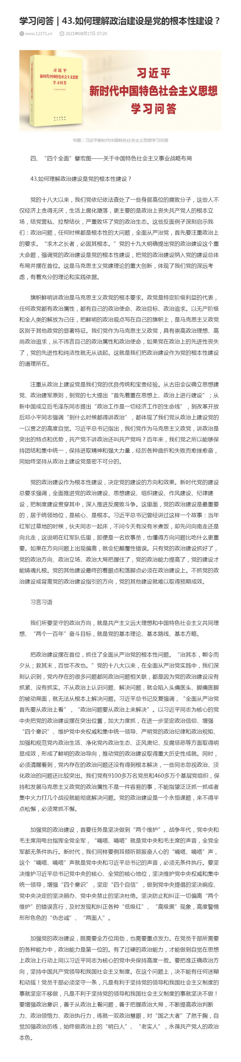 43.如何理解政治建设是党的根本性建设?
