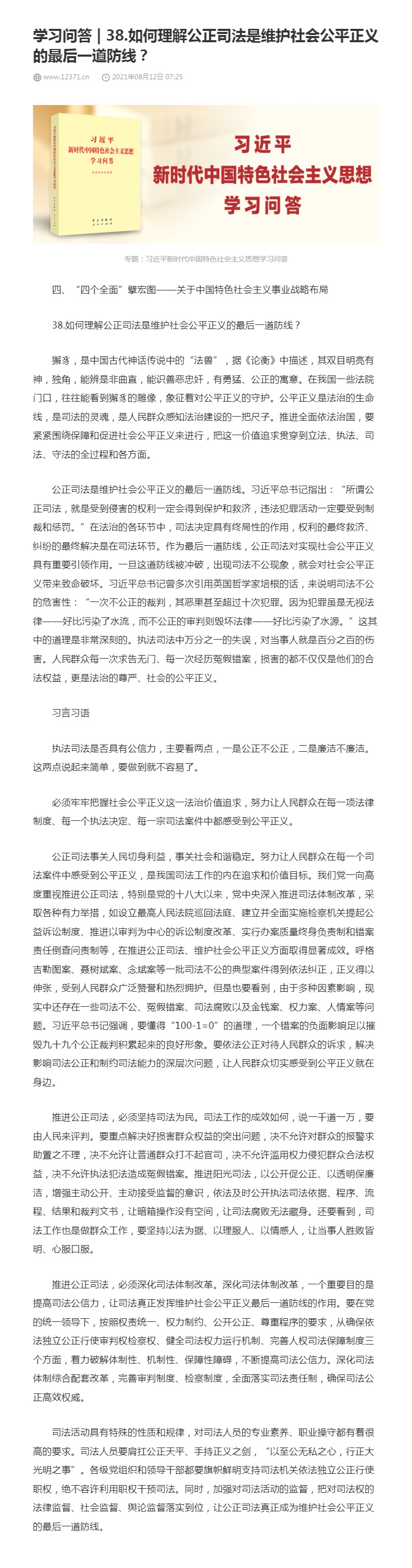 38.如何理解公正司法是维护社会公平正义的最后一道防线?