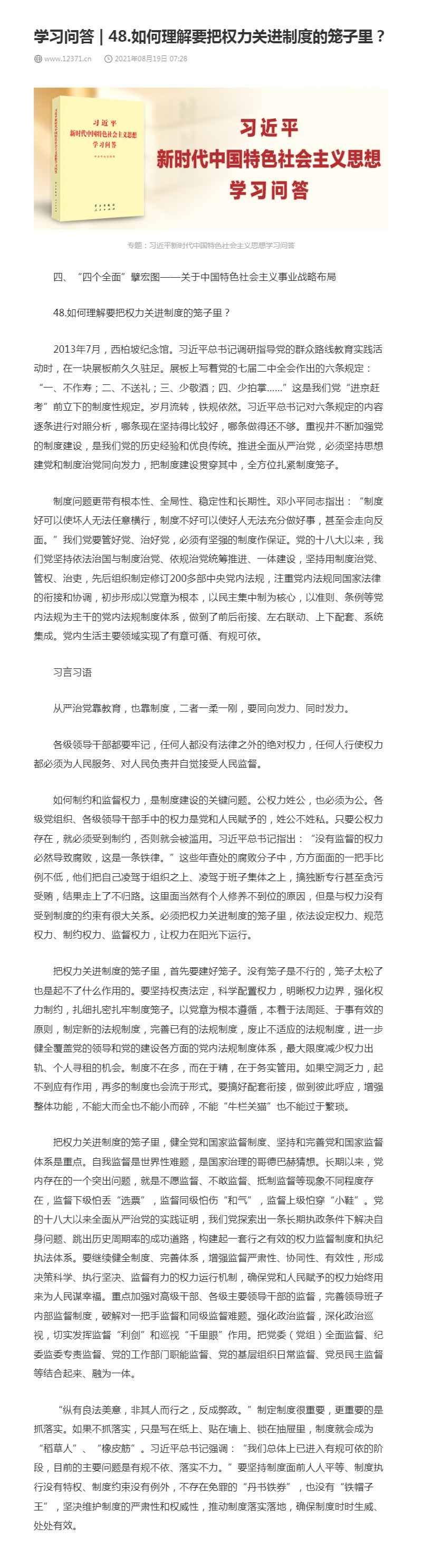 48.如何理解要把权力关进制度的笼子里?