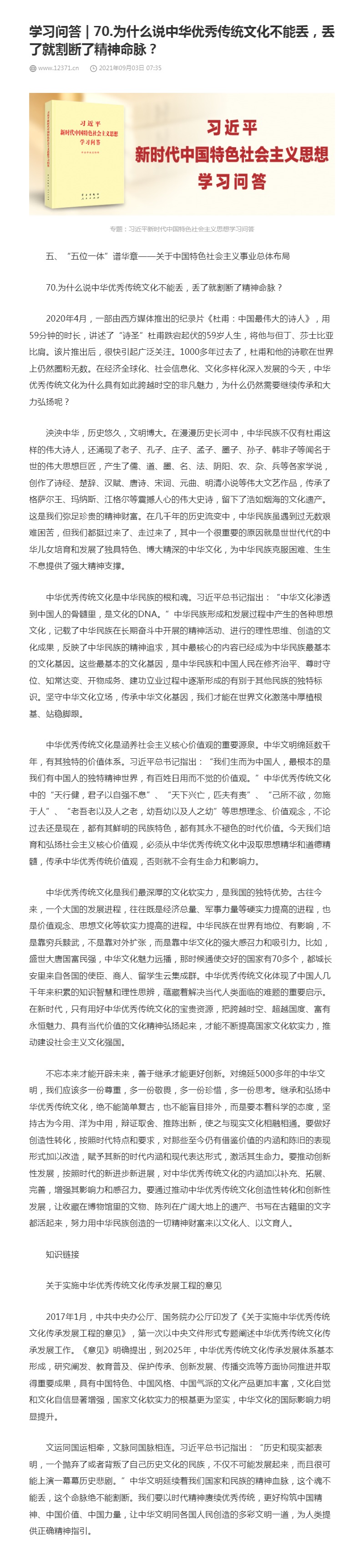 70.为什么说中华优秀传统文化不能丢,丢了就割断了精神命脉?