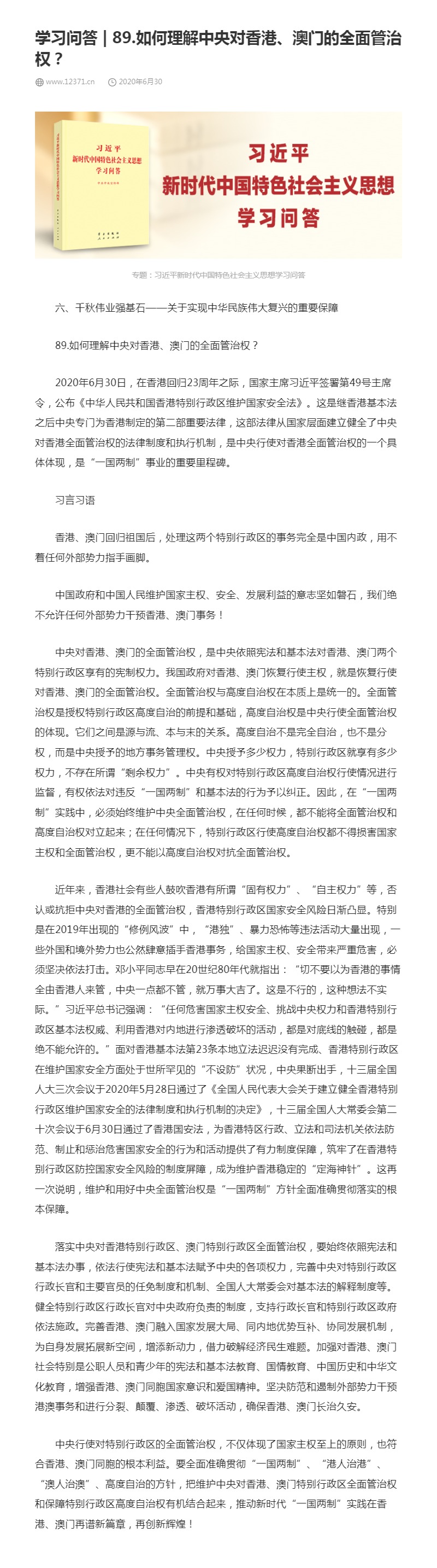 89.如何理解中央对香港、澳门的全面管治权?