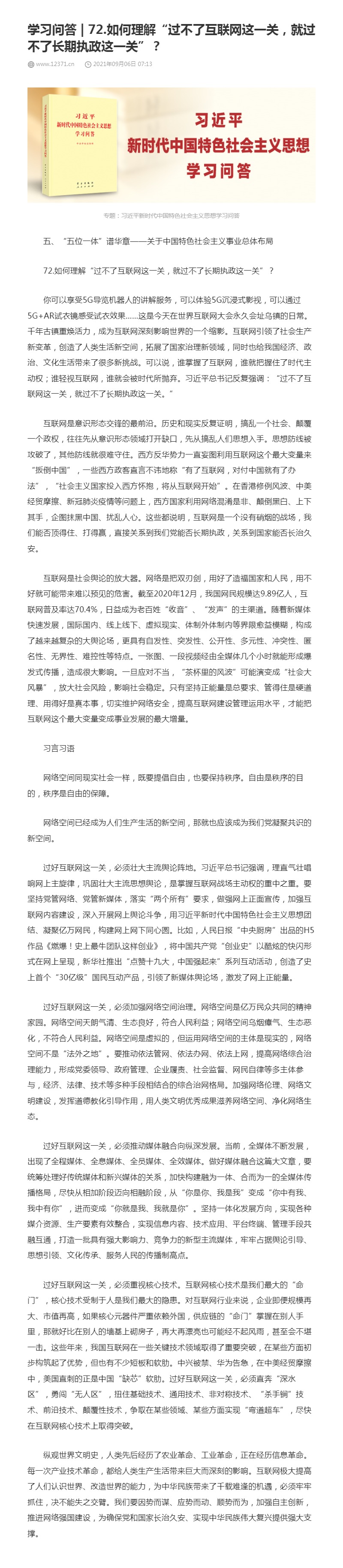 72.如何理解“过不了互联网这一关,就过不了长期执政这一关”?